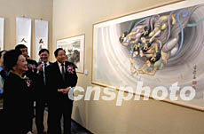 全国政协副主席叶选平为本次书画展题词“中华文化在五洲”,国务院侨办主任郭东坡为书画展题写了前言。中国侨联副主席李祖沛,香港著名艺术家、广州市荣誉市民梁洁华女士分别代表主办单位和海外华侨华人致词。广州市副市长苏泽群主持开幕式。