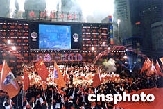 中国申博成功消息传来,今日一早,地处浦江沿岸的“中国近代第一厂”——已有一百三十七年历史的江南造船(集团)公司大门前锣鼓喧天,公司员工共同欢庆申博成功。
