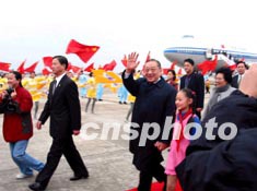 上午9:10时,国务院副总理、中国申博代表团团长李岚清和夫人,中共中央政治局委员、国务委员、国家申博委主任吴仪,中共中央政治局委员、上海市委书记、上海市市长、国家申博委副主任陈良宇等步下舷梯,接受了四名少先队员代表献上的鲜花。上海市市领导到机场迎接。
