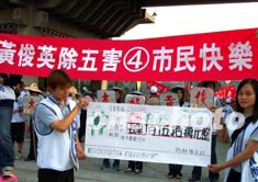 高雄市长选举进入倒计时,十二月五日一支游行队伍在横幅上打出诉求口号。中新社 摄