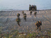 中新网12月6日电 台湾军方的联兴88号操演,5日清晨6时在枋山乡加禄堂海域举行,出动空军战斗机、海军登陆舰艇、陆军攻击直升机及海军陆战队官兵近3000人,参演相当逼真,“国军”声称这是今年度例行性演训,希望藉以验收三军联合作战训练的成果。
