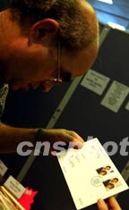 在十二月六日开幕的“香港邮票一百四十周年纪念”邮票展览上,一套1981年7月发行的“英国黛安娜皇妃与查尔斯王子结婚”邮票受到与会者关注。中新社传真 潘索菲 摄