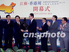 中新社南京十二月九日电 (记者陈旻)由香港特别行政区政府和江苏省人民政府携手举办的“江苏·香港周”今天上午在此间的南京国际展览中心隆重开幕,香港展览会亦同期拉开帷幕。香港工商及科技局局长唐英年与江苏省副省长梁宝华共同为开幕式剪彩。