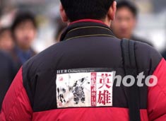 张艺谋执导的首部武侠电影《英雄》本月中旬将在北京举行全球首映式。首映前夕,一位男士身穿贴有《英雄》广告的冬装在街头行走。这部电影的宣传攻势可见一斑。作者:张炜