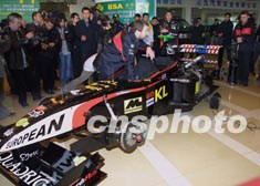 世界闻名的米纳尔迪车队12日携带F1双座位方程式赛车在北京金港汽车公园亮相,将于14、15两日在此演示,车迷花上30000元人民币可在2.6公里的赛道上享受3圈的刺激。作者:赵振清