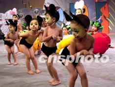 首届南方少儿模特大赛(初赛)十一日晚上在广州举行,来自广州、深圳、珠海、东莞、佛山等地幼儿园的一百八十名少儿模特参加。图为小朋友表演的环保糸列造型,风趣独特。作者:刘卫勇