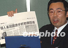 香港医学分子诊断中心等机构十二月十二日在香港举行“DNA与健康”新闻发布会。图为香港大学生物系荣誉副教授谭荣安博士在会上介绍基因检测技术的应用。钱兴强 摄