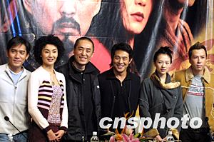 十六日,武侠巨片《英雄》在上海举行主创人员与媒体见面会。张艺谋率五位剧中男女主角李连杰、梁朝伟、张曼玉、章子怡、甄子丹出席本次记者会。作者:汤彦俊