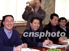 中国足协十六日首次公布选帅工作进程。中国足协国管部主任朱和元(左二)、选帅小组成员金志扬在北京(左三)称,足协“倾向性”选定荷兰人阿里·哈恩为中国足球队新任主帅。作者:沈晨