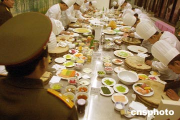 解放军总参谋部十七日在北京举行烹饪技术比赛,以促进部队生活水平的提高。解放军部队的伙食正在向着科学型、营养型转变。作者:宋吉河
