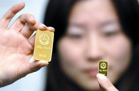 据悉,金条的价格将随上海黄金交易所的价格上下波动,但会有一两天的滞后期。具体的定价办法是,在金交所价格的基础上,加上交易费、代理费、储运费、加工费、检测费等成本及商家的利润。(王刘芳窦红梅)