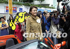 歌星容祖儿12月17日在香港出席一楼盘广告歌《我的骄傲》MTV记者会。楼盘发展商为隆重其事出动名车接送。邓庆乐 摄
