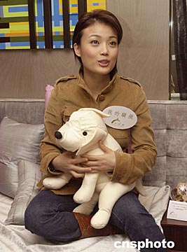 容祖儿在楼盘示范单位内对Miffy公仔爱不释手