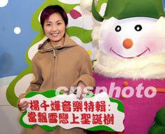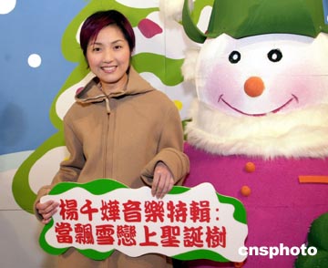 歌星杨千桦12月17日在香港出席其音乐特辑“当飘雪恋上圣诞树首映礼”。杨千桦、古天乐等早前为该音乐特辑远赴日本北海道取景拍摄,并将在本月22日晚于翡翠台播映。邓庆乐摄