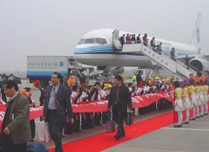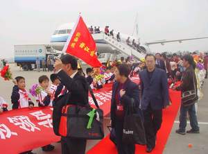 中新网晋江12月18日电(蔡东晓)十二月十七日,为庆祝福建晋江撤县建市十周年,泉州市政府、晋江市政府邀请一百九十名晋江籍海外侨胞,乘坐厦门航空包机从澳门直接入境晋江机场回乡参加庆典活动。
