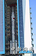 中国酒泉卫星发射中心总装测试厂房中的"神舟""神箭"组合体