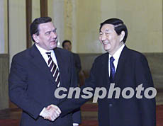 施罗德表示,德中两国在各领域的关系很好,两国关系有着牢固的基础,保持了稳定性和连续性。上海磁浮列车项目是两国富有成效的经济技术合作的重要标志。德方希望德中关系继续在高水平上向前发展,希望进一步加强与中方在旅游、文化、人员交流等各领域的合作,也期待着与中方加强在联合国安理会内的磋商与合作。