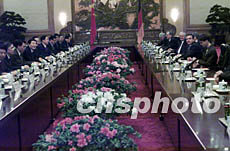中新社北京十二月二十九日电(记者 朱大强)中国国务院总理朱镕基今天在人民大会堂与来访的德国总理施罗德举行会谈,双方在亲切友好的气氛中就双边关系和国际形势交换了意见。朱镕基强调,近年来中德关系在各个领域都取得显著发展,无论在广度和深度上都处于历史最好水平。