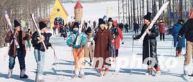 岁末以来的几场大雪使长春净月潭滑雪场变成银白的世界,游人纷纷到此嬉戏滑雪。作者:韩丹