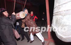 “年年钟声迎新岁,岁岁钟声有不同”,说得就是二十多年来,年年都要“敲击迎新”的永乐大钟。今天凌晨,当北京人再次隆重地敲响这口“世界钟王”时,一百零八响悠扬的钟声划破京城夜空,并通过气动扬声器告诉千里之外的北京人:新年到了。