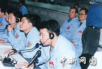 科技人员在北京航天指挥控制中心对“神舟”四号飞船精心实施指挥控制。唐文俊 摄