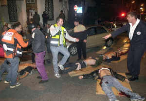 以色列当地时间5日晚,特拉维夫老中心汽车站发生两起自杀性爆炸袭击事件,已导致24人丧生,70余人受伤,其中10人伤势严重。