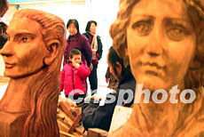 年关临近,北京的木雕人像生意格外火爆,市民可选择雕刻自己不同神态的一组小型人像收藏或馈赠亲友。作者:廖文静