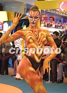 图:人体彩绘表演为亚洲信息技术展助阵