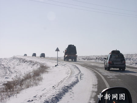 返回舱从内蒙古草原沿公路运往北京(4)孙阳 摄