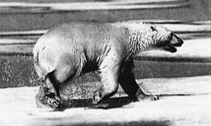 报道称,在加拿大的北极地区,栖息着约1.5万头北极熊,约占世界北极熊总数的2/3。北极熊的主要食物是生活在沿海冰层下的海豹。北极熊觅食的方式是沿着浮冰走到冰层上海豹的呼吸孔旁边守候,海豹一露头呼吸新鲜空气,北极熊就猛扑过去,将之捕杀。全球气候变暖,冰层就会变薄,无法承载北极熊沉重硕大的身躯。同时,全球暖化还会缩短北极熊的捕猎期。这将迫使北极熊不得不到离海岸更远的地方去觅食,寻找能够承受它们体重的冰层。