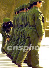 图:解放军通信女兵接受新兵队列训练