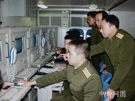 2003年1月4日,着陆场科研人员在精控设备。孙阳 摄