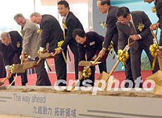 造价约港币100亿的九广铁路落马洲支线动土仪式一月九日在香港举行。图为主礼嘉宾主持动土仪式。钱兴强 摄