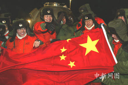 2003年1月5日,返回舱成功着陆,着陆场内一片欢腾景象。孙阳 摄