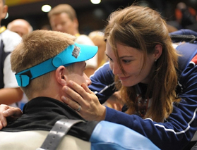 雅典奥运会,埃蒙斯最后一枪脱靶,痛失金牌。今次又演最后一枪,将金牌拱手相让。赛场失意的他得到妻子温情抚慰,原来世间有比金牌更美好的。另一边,“所谓伊人,在水立方”,郭晶晶最后梦幻一跳……