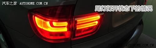 最在外观介绍的最后我们在看看2011款宝马X5尾部的改变,通过与老款车型的对与2011款在尾部共有三处变化,其中以尾灯的细节处理最大。2011款宝马X5的尾灯采用了LED灯带的设计与5系GT类似,这样的设计在保证后车可以清晰观察到前车信息的同时还可降低对后车驾驶员的影响。另外可能受于LED灯的使用,2011款宝马X5的尾灯颜色也略深一些。
