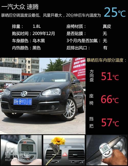 骄阳下黑内黑外的速腾冠军看着就给人一种燥热感,车表温度飚到了60度以上,车内皮肤触及点烫得难以触碰,还好空调比较争气,让车内温度下降很快,当然后排出风口也是功不可没的。