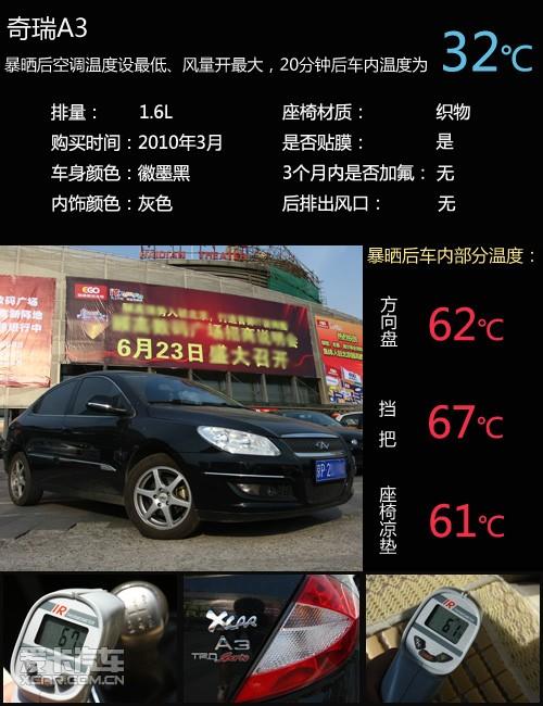进了这台暴晒后的奇瑞A3立刻能够感受到全身烘烤的感觉,屁股下的凉垫儿真没有去直接接触织物座椅来得舒服,空调按键质感欠佳,开启后初始降温速度真没有开窗通风来得直接,但是为了测试,咱兄弟就忍了吧。