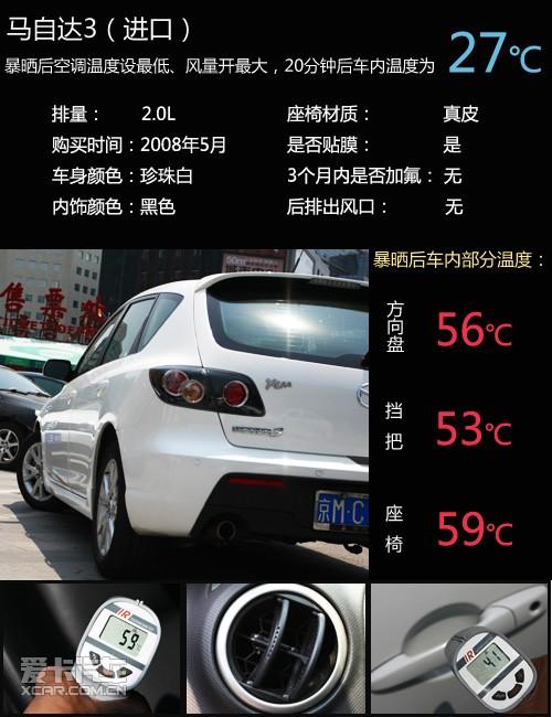 进口马自达3在暴晒时路人的回头率很高,也许是官方进口时没有这个配色,所以珍珠白自喷漆的它在路上十分惹眼。捏住出风口大大的叶片就能控制出风方向,用起来十分方便。空调卖力工作20分钟后,最终车内温度下降到了27度。
