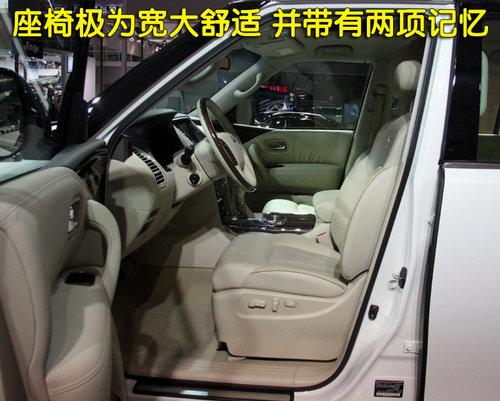 英菲尼迪全新QX56的座椅舒适度很高,就算你身材再魁梧也不用担心乘坐上的舒适性,并且真皮材质较为柔软。座椅更是带有多达十向的调节以及两项的记忆功能,使你无论是在主驾还是副驾都会感到非常舒适。
