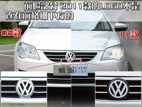 在正面特征上,新宝来2011款的前脸部分需要仔细观察才能够看出其中的变化。如上图所示,2011款新宝来中网位置的大众车标下方与中网并不相连,而2008款的新宝来在同样位置则是与中网下方相连接的。