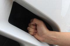 面积宽大的前保险杠上四个前侧探头一字排开,下面的进气格栅采用蜂窝网状,车型定位运动的身份暴露无遗。底边两侧原本应该是被雾灯雄霸的区域,M3把这部分处理为黑色进气口,前轮刹车片散热勤恳服务,一拳的高度可见它一定拥有很好的胃口。
