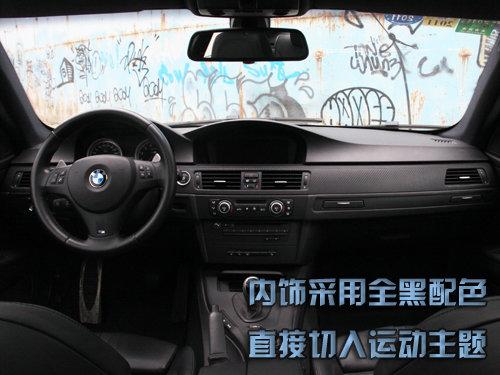 如果说外观的感觉有点隐晦的小激情,那内饰的感觉则是给人彻头彻尾的运动风格。M3的内饰采用非常动感的全黑配色,而且黑的非常彻底。除了应该提示的部分用了小面积银色装饰条和蓝、红颜色稍微处理,其他的可以用伸手不见五指来形容,彰显出个性化的运动特质。