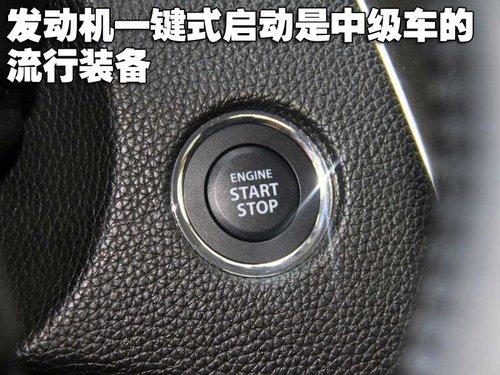 在以往点火钥匙门的位置,一键式启动按钮映入眼帘,镀铬的装饰非常的亮眼,这样的装备也是符合其中级车的定位诉求,并且这个装备是流行趋势所在。