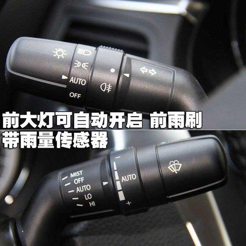 在动感的三幅方向盘后部是非常有手感的转向与雨刷开关,其中转向拨杆上配有大灯开启装置,自动开启功能的实现只需把档位拨到“AUTO”位置,同时在雨刷器还带有雨量传感器,可根据降雨量自动调节雨刷速度。