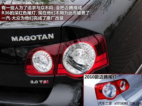 2011款迈腾的外观和内饰进行了的一些修改,主要是换装新的和R36一样的深红色尾灯和新的内饰面板,另外在高配车型上增加了后排乘客调节前排副驾驶座椅的功能,其他的变化都是细节上的,对整车实用性影响不大,不过也顺便把座椅位置记忆减配了。