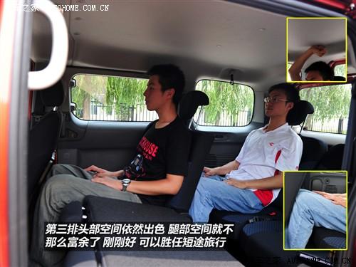 本车的体验者身高为188cm,但坐在NV200的前两排头部仍然有一拳的余量,车身较高确实是厢式车的一大优点。而且和之前介绍的两款车型不同,NV200的第三排座椅可以乘坐一名成年男性,虽然也不宽裕但可以进行短途的乘坐。