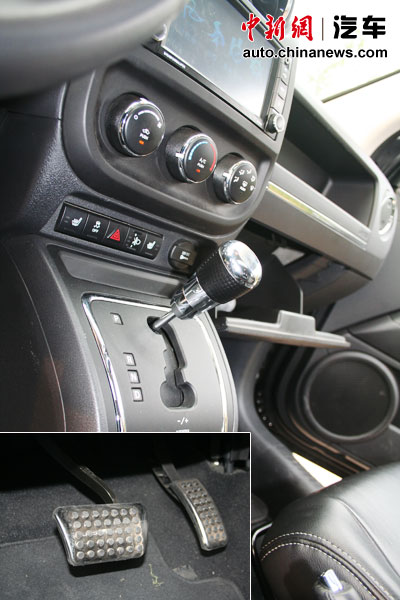 这台指南者在内饰方面的变化和外观相比,在视觉效果上变化没有外观那么明显,刹车踏板、油门踏板和档把都采用了带有金属质感镀铬件进行了装饰。
