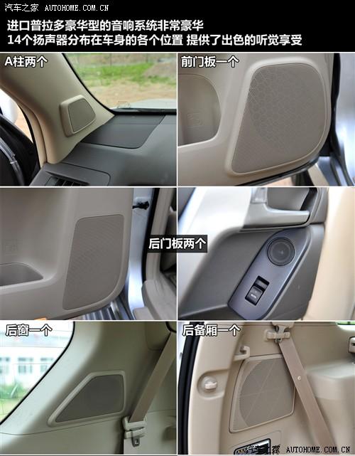除了6碟DVD播放系统外,普拉多还加入了年轻人非常喜欢的AUX和USB接口,这也是普拉多年轻化的一个方面吧。强大的音响系统是普拉多的一大看点,全车从前到后共配置了14个扬声器,提供了出色的视听享受。