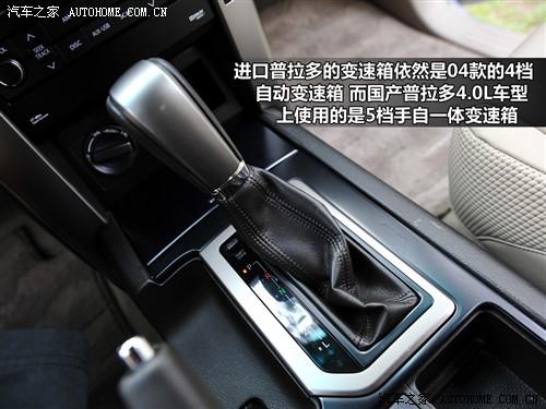 新普拉多的四幅方向盘加入了银色装饰条,使得整体感觉更有活力。方向盘采用真皮包裹,握起来粗细合适,手感比较出色。和老款相比,新的方向盘还集成了音响控制和蓝牙电话功能。变速箱依然是老款的那个4档自动变速箱,而国产新普拉多已经升级为5档手自一体变速箱。